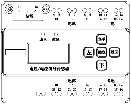 检测三项电压2路,并上传到监控器或监控分机;回路总线供电,由系统主机集中不间断供给;手动进行地址编码,每台传感器均具有唯一的地址编码; LCD 显示电压等电气参数。